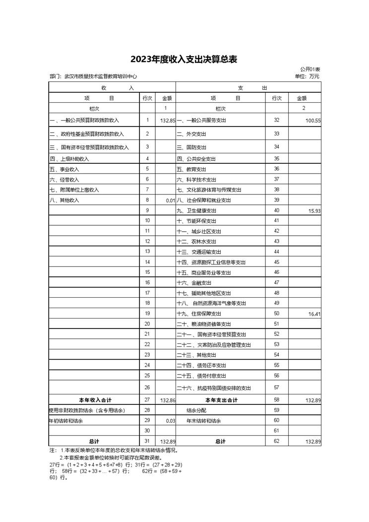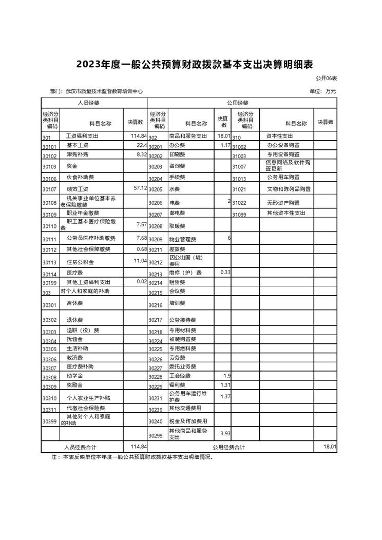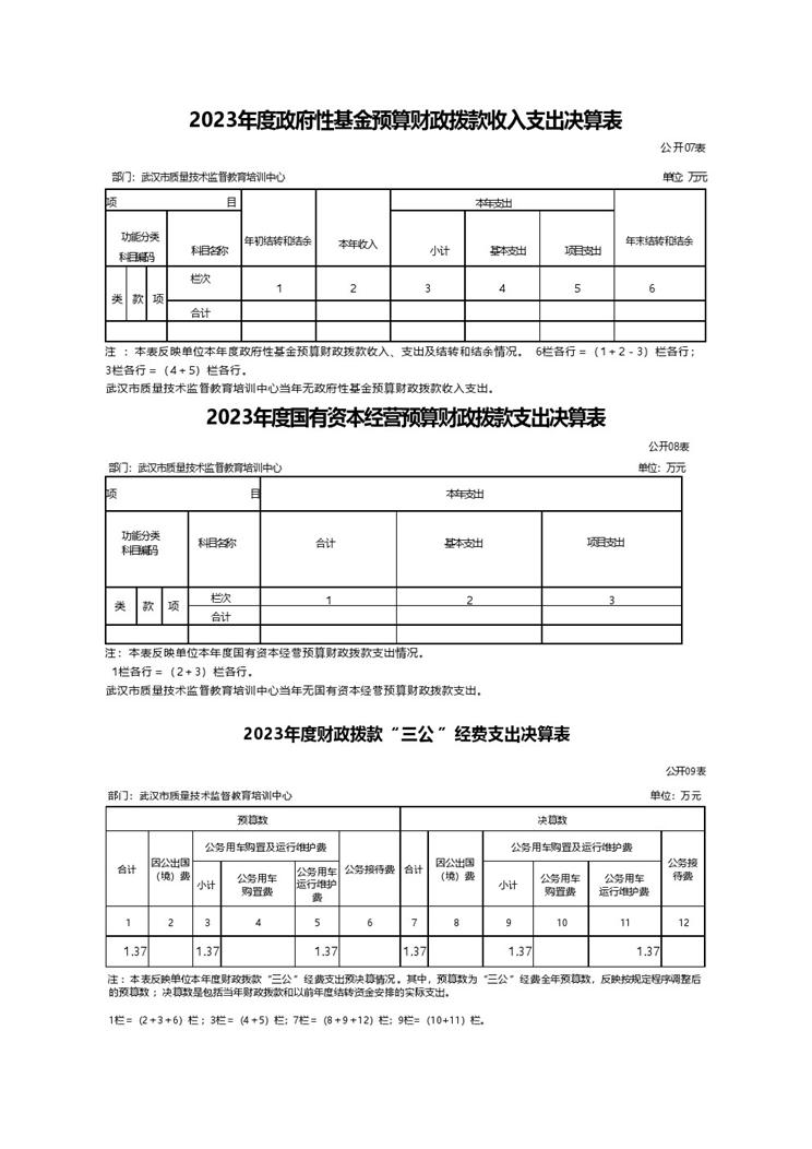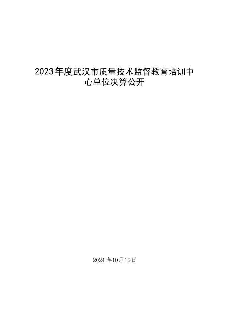 2023年度武汉市质量技术监督教育培训中心决算公开