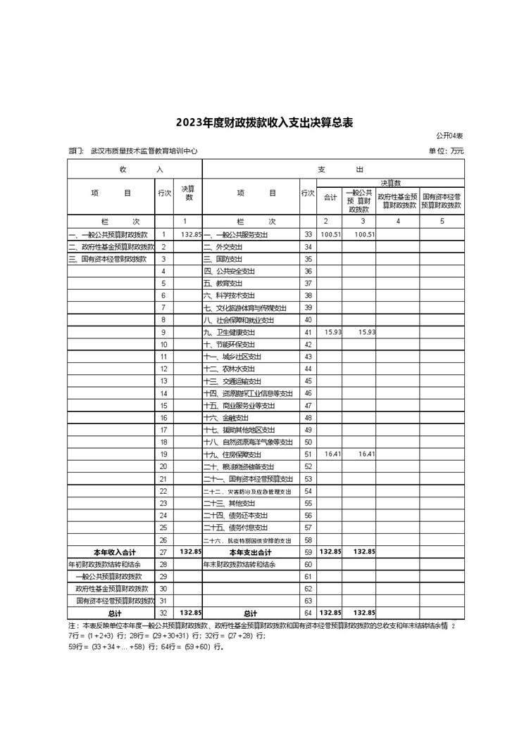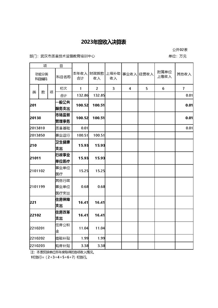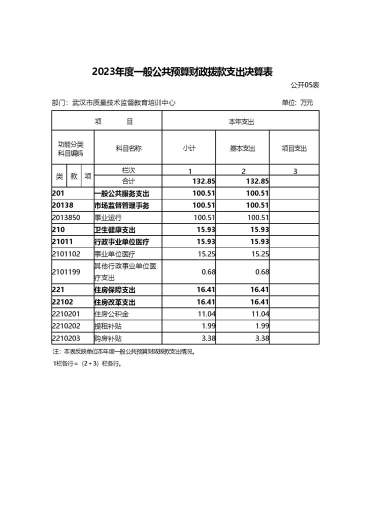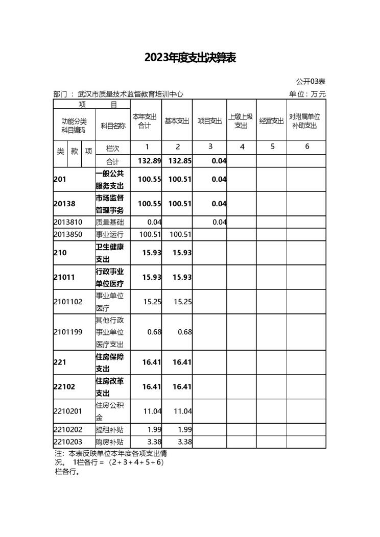 2023年度武汉市质量技术监督教育培训中心决算公开