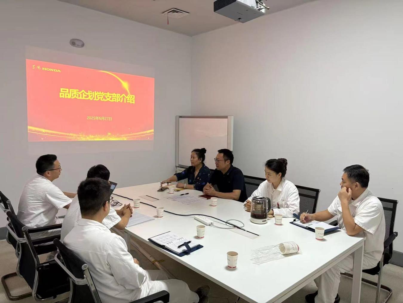 活动首先由东本品质企划党支部组织委员周瑞之介绍了支部组织建设的基本情况,提出了企业的基本需求。市计量标准院第五党支部纪检委员黄颀就本次共建的初步活动方案进行了介绍,双方进行协商形成了初步意见并达成了共识,双方将以此次共建活动为契机,充分发挥机关党组织的政治引领作用和企业党组织的战斗堡垒作用,实现机关党建与产业发展深度融合、同频共振,共同推动我市汽车产业高质量发展。