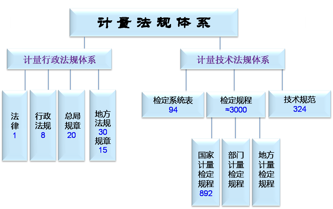 经过几代计量人的努力,我国目前已建立起了一套在全球范围内相对领先,相对清晰的计量法律法规体系,该体系以《计量法》为基本法,还包括若干计量行政法规、规章,以及地方性计量法规、规章为配套,另外还有庞大的计量技术法规作为辅助的的计量法律法规体系。